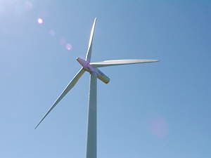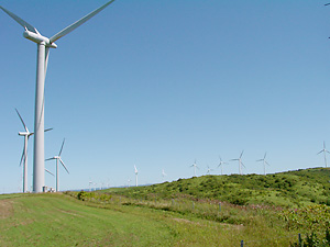見上げれば大空にそびえ立つ風車の林、静かに音を立てて風を掴む。青と白のコントラストが美しく目に染み入る。