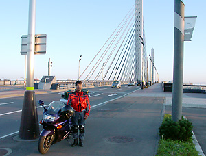 帯広市街を流れる十勝川、十勝大橋を渡る頃には夕暮れ時になり、走れるところまで走る。限界が見えたところは上士幌の道の駅、テントを準備しなかったことを後悔しても始まらなかった。