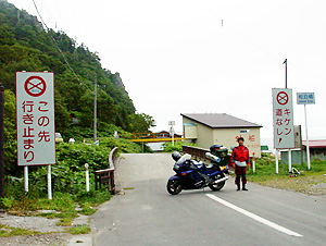 羅臼の街を突っ切って知床半島をひた走る。先端まで行けないのは分かっていたが相泊橋で道は途絶えていた。うーん残念、仕方なく引き返す。