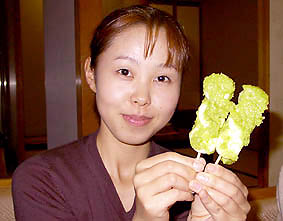おそらくタレはうぐいす豆系でしょう。素朴な味わいでした。ちなみにモデルはツアーリーダ、院1回生のお嬢様。