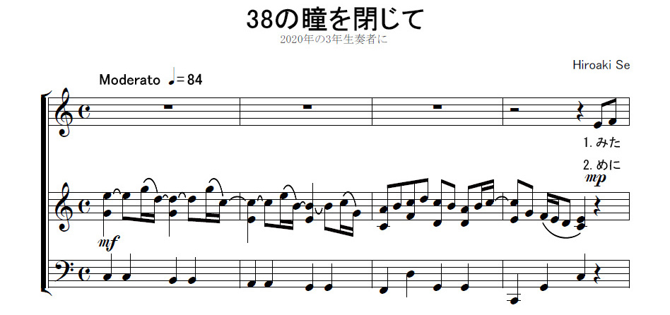 New! 部分同声2部合唱曲「38の瞳を閉じて」無料楽譜(2020コロナに負けない!)