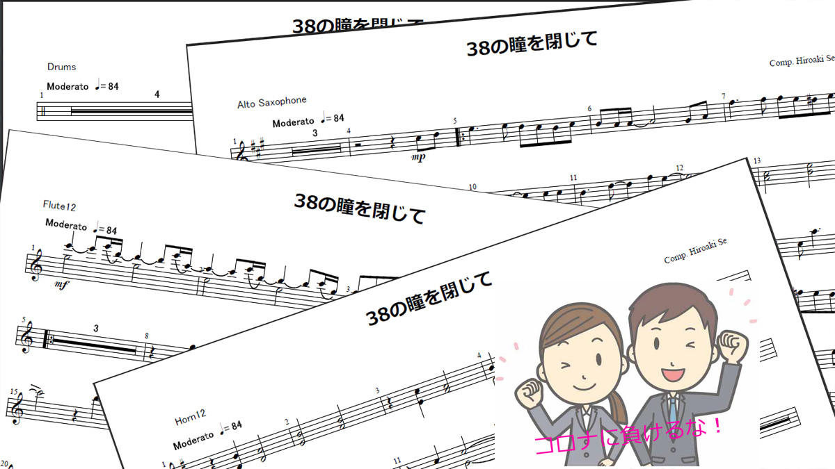2020年5月18日に「38の瞳を閉じて」吹奏楽バージョンのスコアとパート譜をzip圧縮ファイルで提供しはじめました。