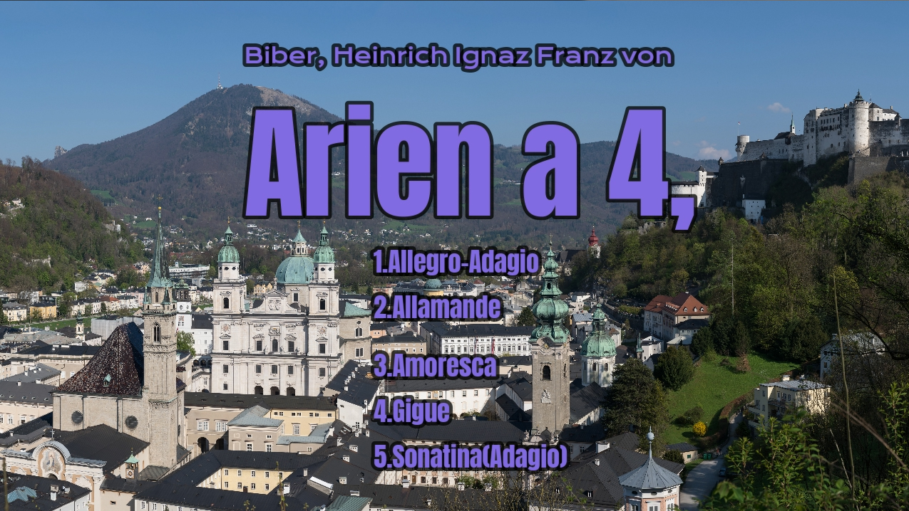 4声のアリアは5曲から成っています。1.アレグロ - アダージョ 2.アラマンデ 3.アモレスカ 4.ジーグ 5.ソナチネ(アダージョ)です。